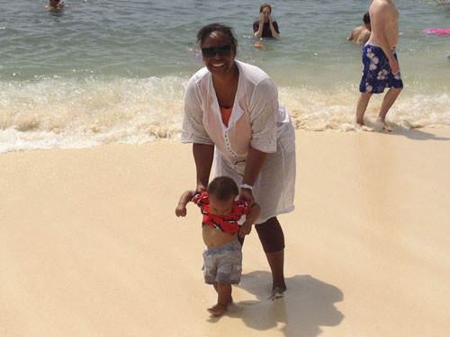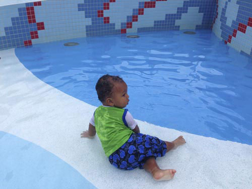 TJ got to put his toes in the sand and swim in the baby pool…so much fun =)