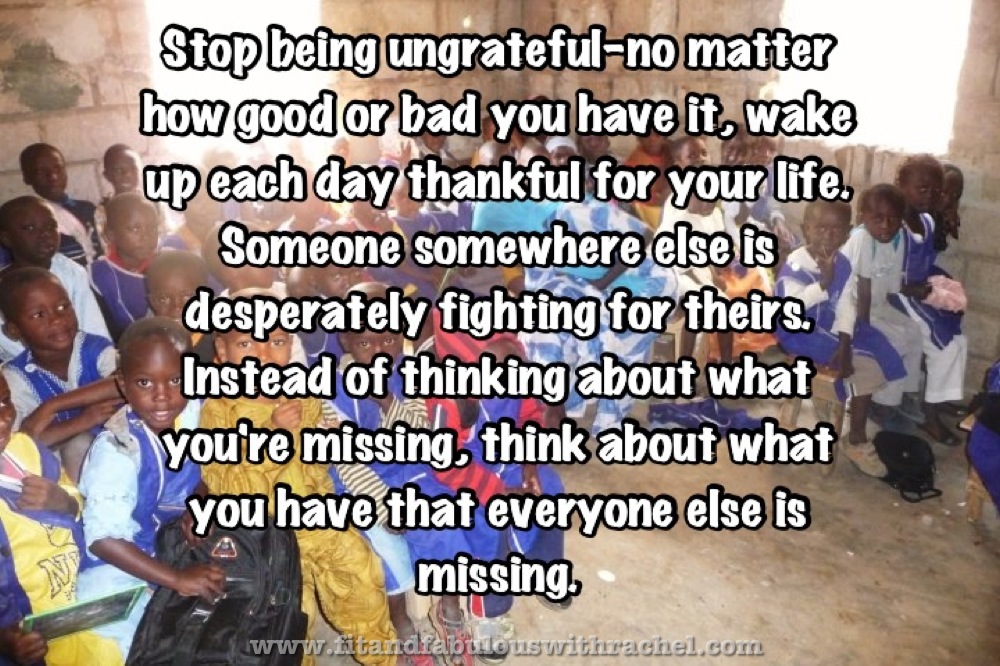 Today I want to talk about gratitude. I feel like it’s so easy in our society to get caught up in the more more more mentality…that you feel like you never have enough. Or you want something that you really don’t need. When was the last time you looked around at what you already have and just said thank you? The last time you were in awe of how blessed you are because you have a place to live, food to eat, and a body that can move. Don’t take these things for granted.